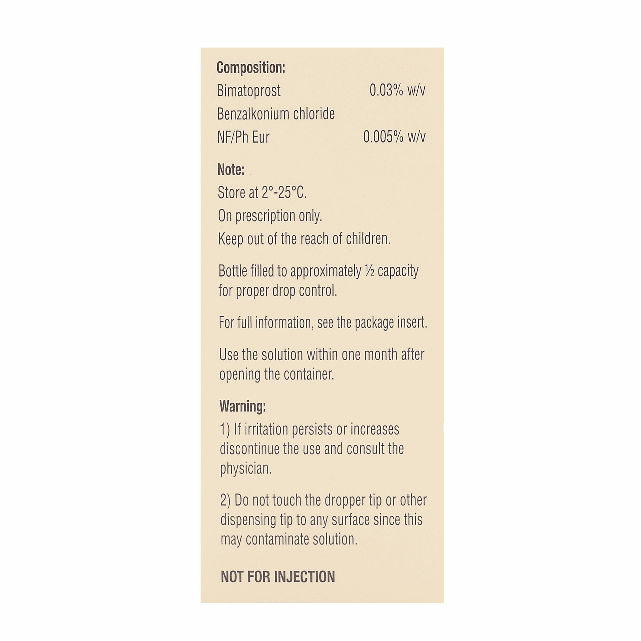 The active ingredient bimatoprost belongs to a group of drugs called prostamide components. Used to lower intraocular pressure in glaucoma or intraocular hypertension.